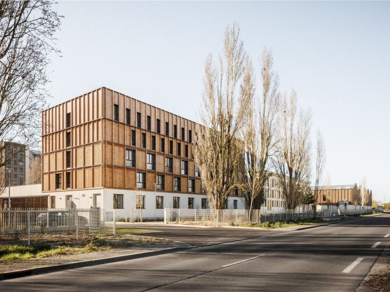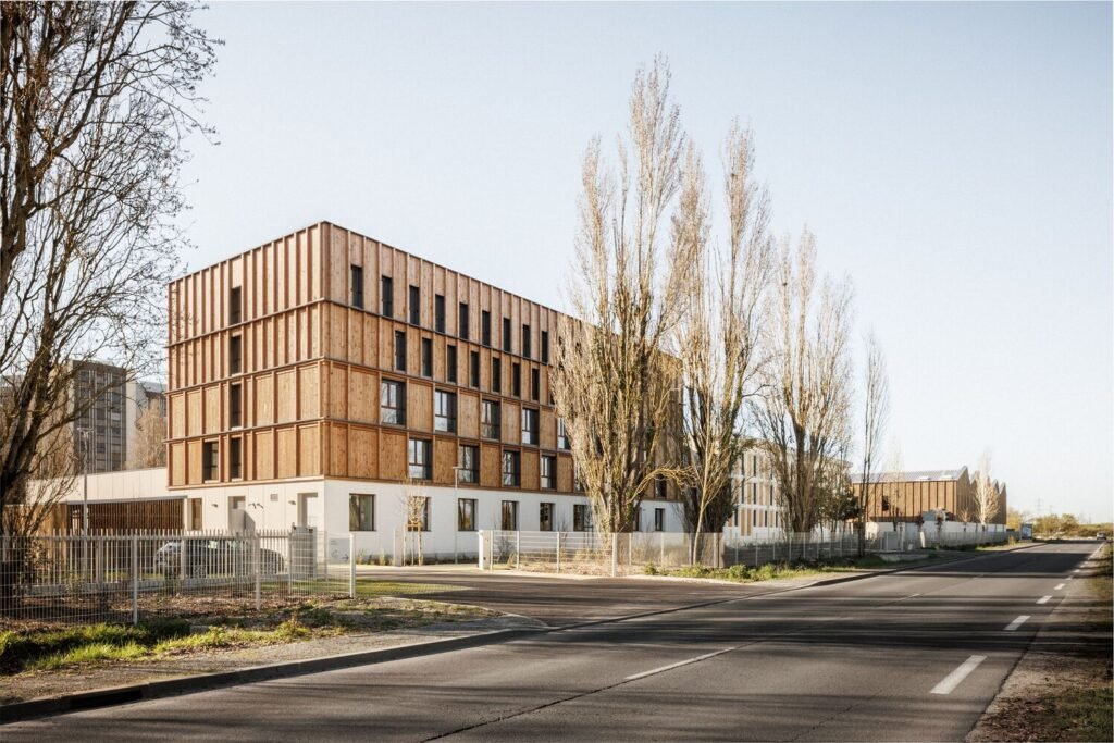 With a mix of social and market homes  a place for urban parkside. Three key materials, cream and green, have been employed to create a carefully considered facade with its own strong identity.