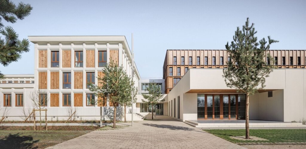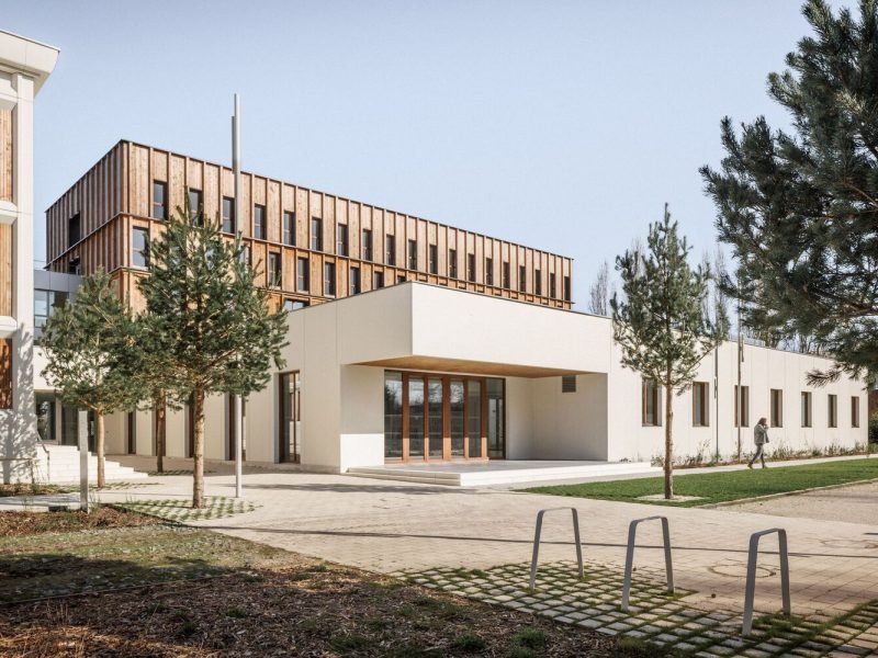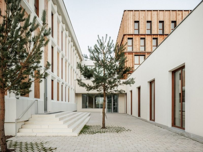 A central patio is created, which contributes to the bringing of light into the heart of the building. Some of the rooms of the accommodation center are positioned on the two upper floors..